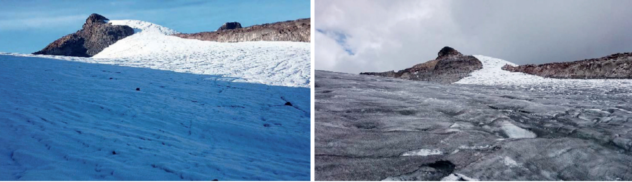En la zona ecuatorial, la fusión glaciar es más dinámica y en algunos casos acentuada, por eso el pronóstico más optimista dice que para la segunda mitad del siglo (algunos pronostican que será mucho antes), Colombia se quedará sin glaciares, sin el agua que en cada ciclo producen y sin su efecto en los ecosistemas de altura.