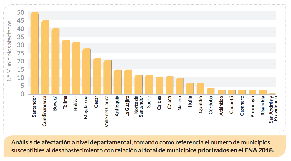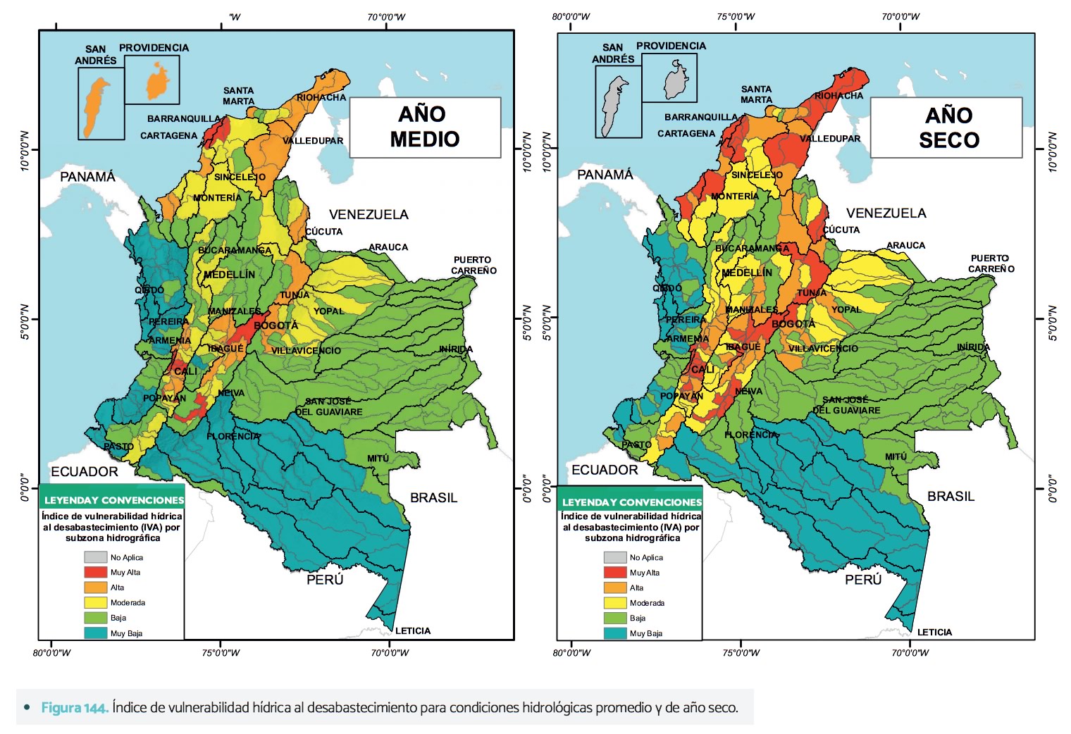 La deforestación y el cambio climático son las principales causas de que 391 municipios estén al borde de quedarse sin agua. Los casos más graves están en Santander, Tolima y Cundinamarca. Particularmente, las subzonas más vulnerables al desabastecimiento en cualquier época del año están en la cuenca del río Cauca: en los ríos Lilí–Meléndez y Cañaveralejo, ríos Guabas, Sabaletas y Sonso, ríos Arroyohondo, Yumbo, Mulalo, Vijes, Yotoco, Mediacanoa y Piedras, ríos Amaime y Cerrito, río Piendamó y río Guachal.