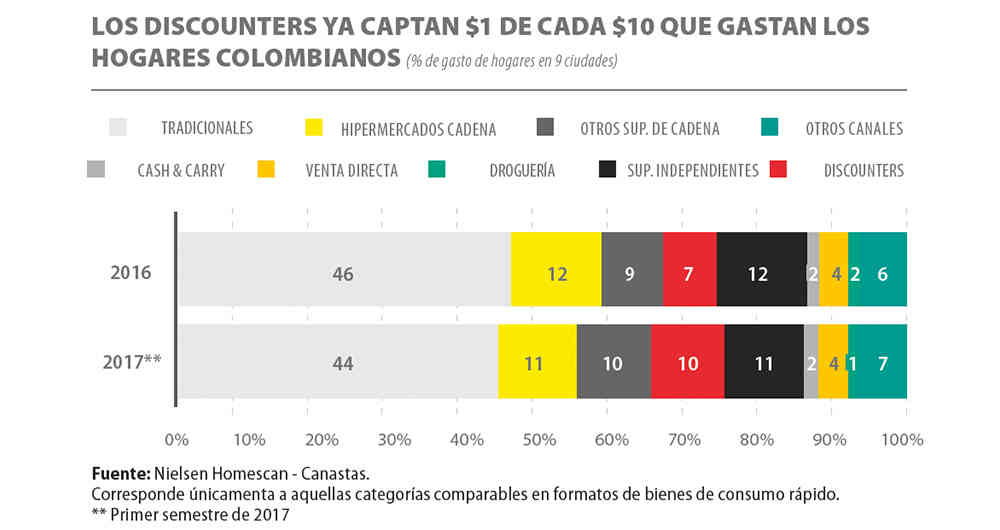 Del impacto de las tiendas de descuento duro nadie se ha salvado en el mercado colombiano. Ni las tiendas de barrio, ni las grandes superficies, ni los supermercados independientes y mucho menos las principales marcas que fabrican bienes de consumo y que en algunos casos se han visto desplazadas por artículos de marcas propias.