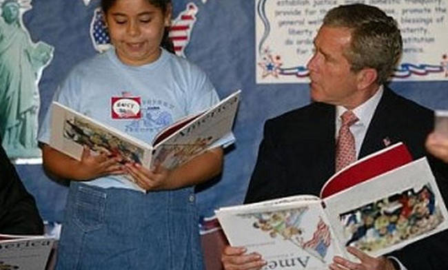 Este montaje recuerda al que le hicieron al entonces presidente de Estados Unidos George W. Bush, en el que supuestamente leía un libro al revés justo cuando le avisaron del atentado de las torres gemelas el 11 de septiembre de 2001.