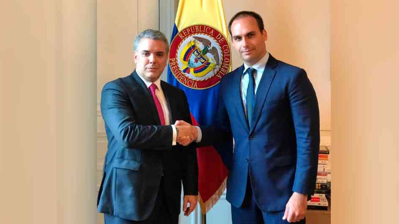El presidente Iván Duque se reunió en Davos (Suiza) con su homólogo brasileño Jair Bolsonaro en el marco del Foro Económico Mundial. Tras la reunión, además de corroborar las buenas relaciones entre los países, Bolsonaro manifestó su agrado por Duque "no solo porque él es muy agradable, sino porque es amigo de mi hijo Eduardo". El presidente de Brasil se refiere a su segundo hijo, quien es diputado nacional. El pasado 3 de diciembre Eduardo visitó la Casa de Nariño y se reunió con Duque. "Siendo recibido por el presidente de Colombia Iván Duque con quien tuve una amistosa conversación y pude expresar mi visión sobre problemas en América Latina en que Brasil y Colombia podrían actuar en cooperación", aseguró ese día Eduardo Bolsonaro. Un día antes se reunió con Luigi Echeverri, uno de los hombres más cercanos a Duque y quien fue el asesor clave en su campaña a la presidencia.