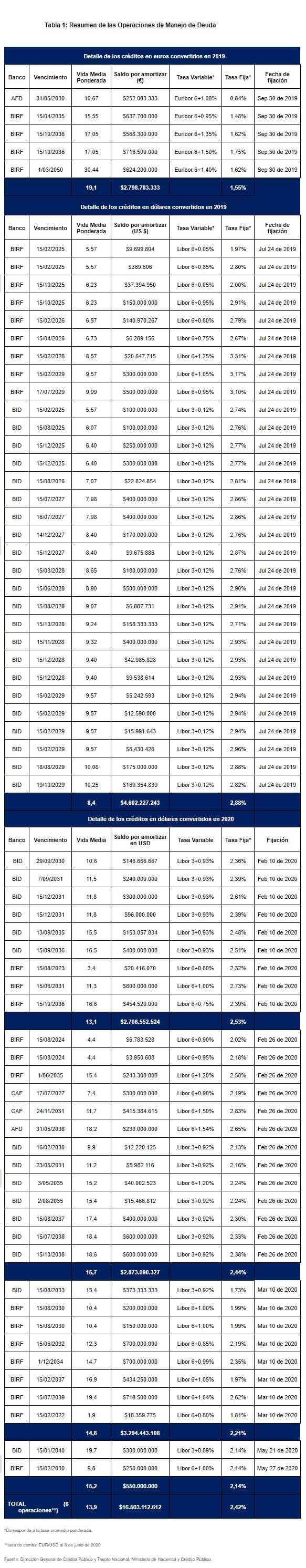 El Ministerio de Hacienda explicó que el país aprovechó el contexto internacional de tasas en dólares a mínimos históricos para hacer uso de las cláusulas de conversión de los contratos con la banca multilateral.
