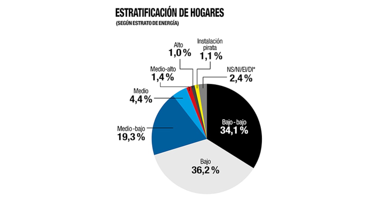Es decir, son los candidatos a subsidios, aunque a veces albergan a personas pudientes. Entre tanto, las familias que habitan en el estrato 4 son consideradas de clase media y las del 5 y el 6 son media alta y alta. En estas franjas está el 6,8 por ciento de las unidades habitacionales; mientras que hay otro 3,5 por ciento de viviendas que registran como piratas o de estrato desconocido, según le dice al Dane el encuestado.