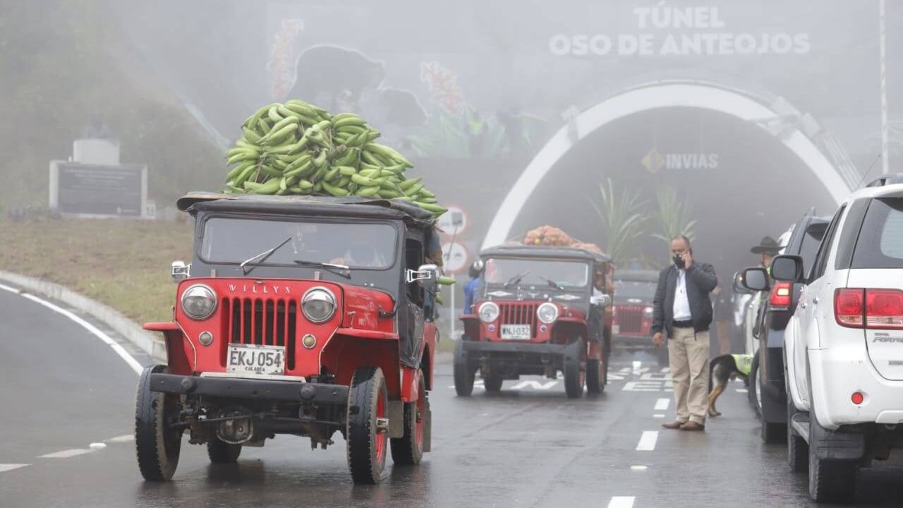 Los famosos jeep willys engallados con todos los productos agrícolas; las mulas con sus cajones transportando plátanos, naranjas y otros alimentos, hicieron parte del desfile inaugural del Túnel de la Línea.