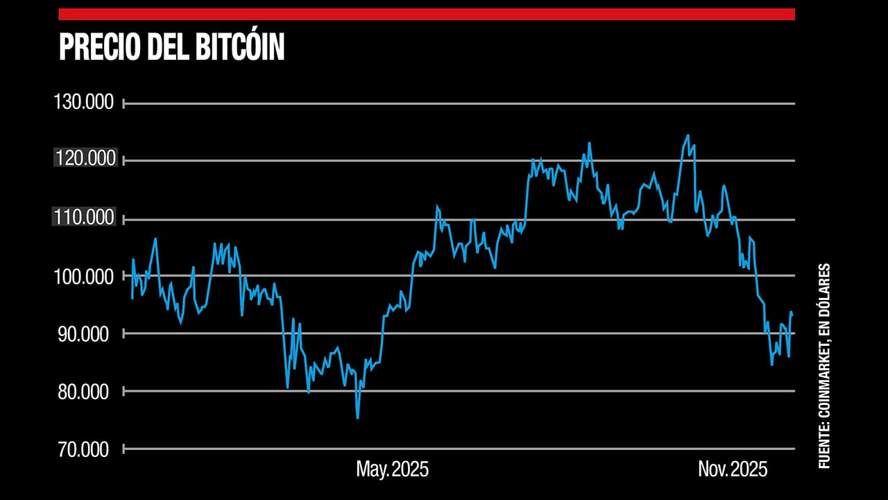 Sin embargo, después de octubre, el bitcóin tuvo una caída abrupta y, en un poco más de mes y medio, el precio se ubicó apenas en una cifra superior a los 84.000 dólares. Al cierre de esta edición, se recuperó y se situó en 93.400, nivel similar al que tenía en abril pasado.