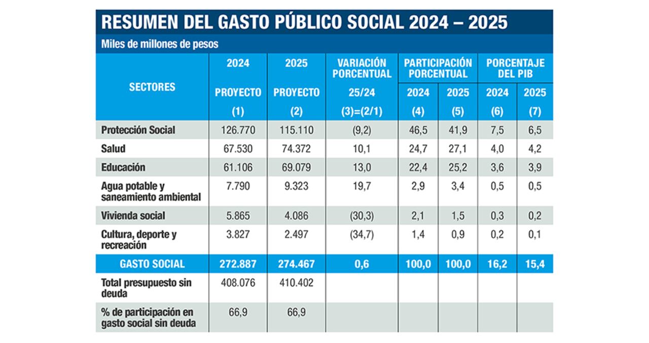 En el caso de las pensiones pagadas por el Estado, por ejemplo, se trata de un sistema que debe subsidiar a todos los jubilados, pues no puede haber mesadas inferiores a un salario mínimo y las que superan ese valor usualmente requieren apoyo, pues las cotizaciones son insuficientes. Para 2025, según el proyecto original de presupuesto, que será el que rija en el próximo año porque se instaurará por decreto, se evidencia que el gasto en política social será incremental en comparación con la presente vigencia: sube a 274,4 billones de pesos.
