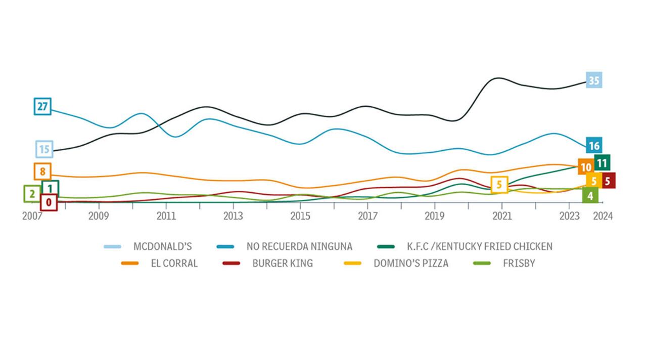 En la mente de los niños y jóvenes, McDonald’s sigue siendo la más recordada, con 35 por ciento y 2 puntos más frente al año pasado.