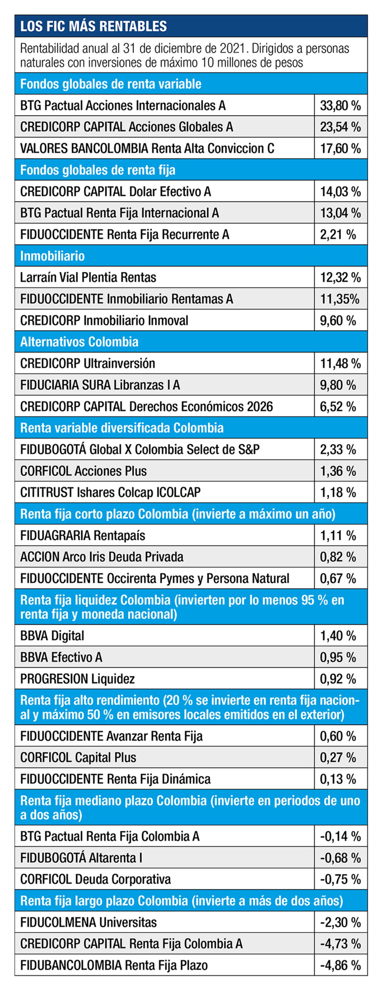 A continuación, el ranking de los FIC más rentables del año pasado, medido por la firma especializada Carteras Colectivas