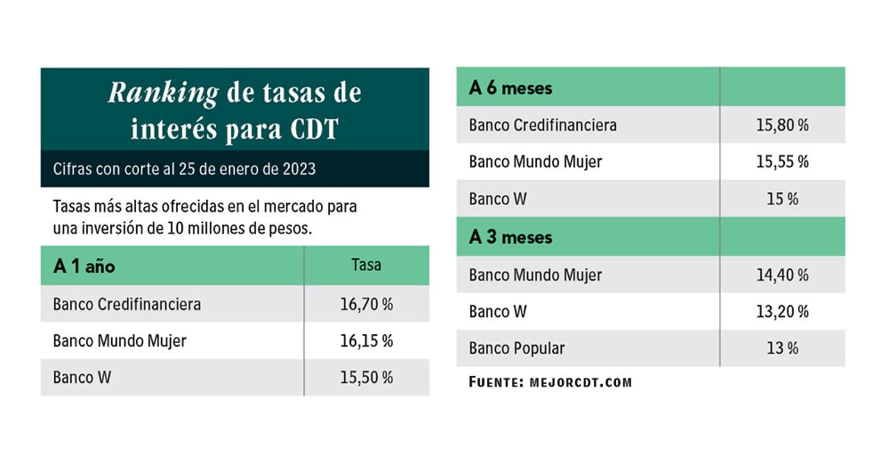 Estos títulos son bastante populares en el país, pues las personas entienden su funcionamiento. Saben que entregan su dinero por un periodo específico y, una vez este se cumple, les devuelven su ahorro más una rentabilidad. Aunque los CDT siempre han tenido demanda, hoy viven uno de sus mejores momentos, pues las tasas de interés están en el nivel más alto del presente siglo.