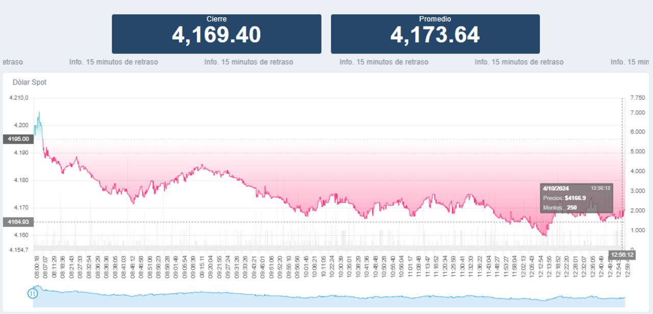 Respecto al movimiento de la divisa desde el primer minuto de cotización, la variación fue de $ 26, teniendo en cuenta que el precio de apertura durante esta mañana fue de $ 4.195.