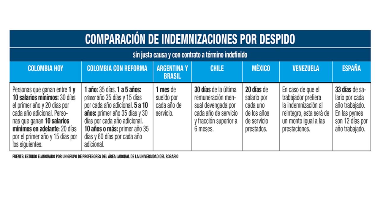 Quizás una de las propuestas más gravosas para las empresas es el aumento en las indemnizaciones por despidos sin justa causa. Serían de las más altas entre países de la región.