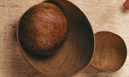 Esta vasija de origen vegetal es elaborada a partir del totumo y fue ampliamente usada en tiempos precolombinos para contener líquidos y sólidos.