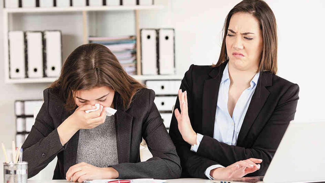 Cada vez es más común que los sanos en la oficina se defiendan de colegas que van a trabajar con virus respiratorios o estomacales, convencidos de que no van a contagiar a nadie. Por ese motivo reciben humillaciones y hasta comportamientos discriminatorios, como le sucedió a Hernando Santander cuando regresó a su puesto, sin estar totalmente recuperado de un rotavirus. “Casi nadie me daba la mano, me hablaban a una distancia de casi cinco metros y era obvio que me querían lejos porque creían que les iba a pasar los gérmenes”, dice. Ante el dilema de muchos de si es conveniente ir enfermo de gripa a trabajar o no, algunos expertos responden qué hacer.