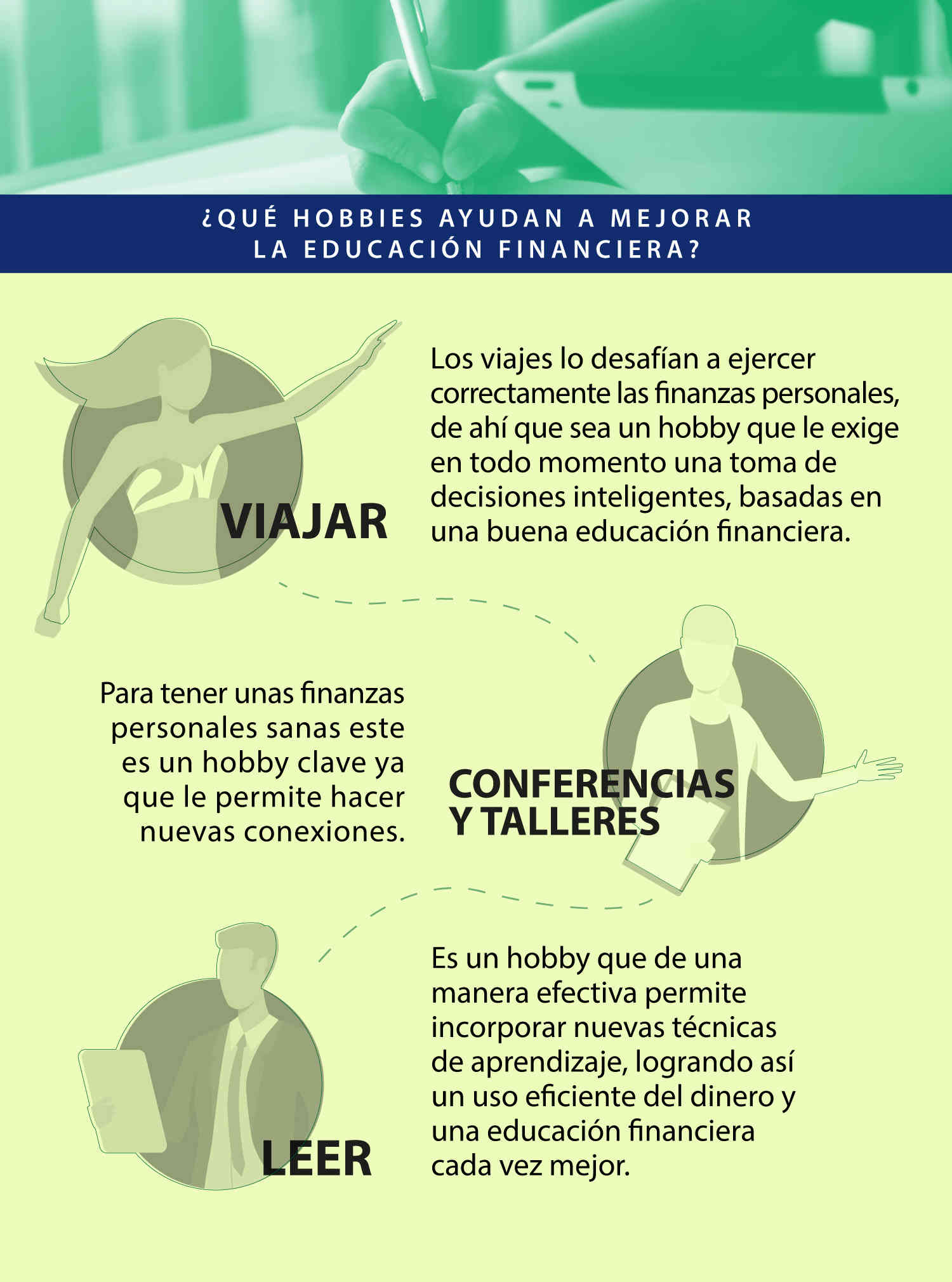 Por eso la importancia de aprovechar hobbies como la participación en conferencias y talleres para mejorar su educación financiera.