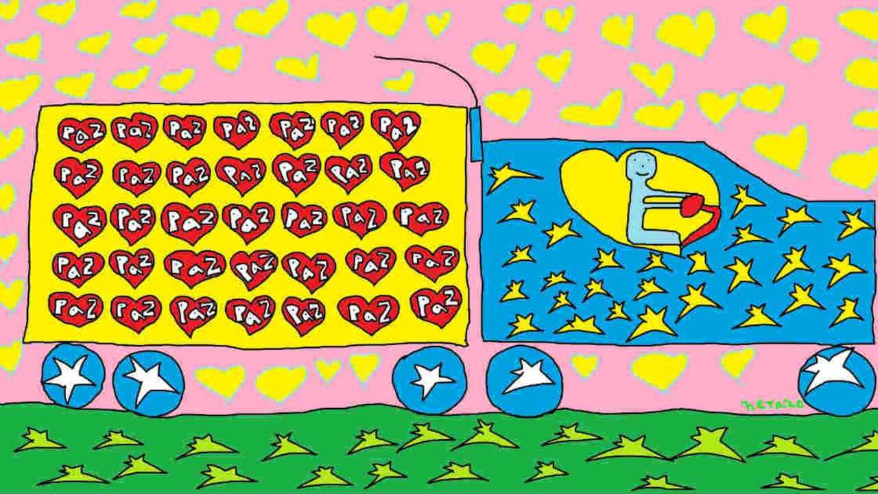 “El proyecto es un álbum digital con los dibujos que hacen los niños sobre diferentes temas que se relacionan con la paz”, explicó Díaz. Y agregó: “los dibujos los reinterpreto a partir del Arte Pop Mágico, que consiste en rescatar la simbología y los grafismos que todos alguna vez hicimos cuando niños en una búsqueda por reconectarnos con la magia de estar en el presente”.