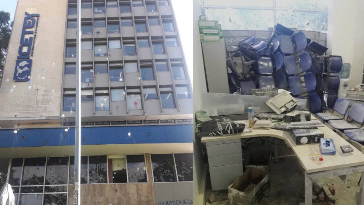 Sobre las cinco de la tarde del viernes pasado, un grupo de personas atacó el edificio del Icetex, en el centro de la ciudad. Pese a que en ese momento se encontraban en la institución más de 450 personas entre funcionarios y usuarios, los encapuchados no paraban de lanzar bombas molotov, pintura y piedras.