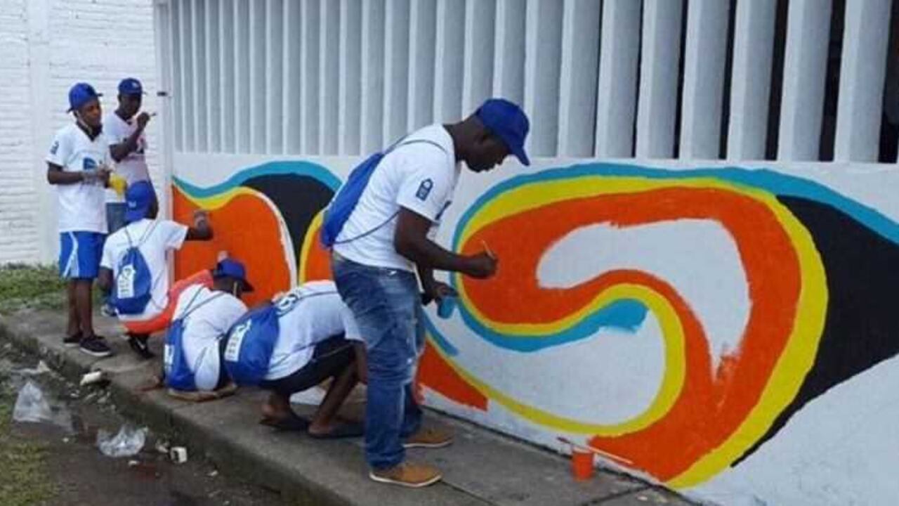 Hoy ni Gilbert ni Luis Elvis están en la cancha entrenando, aunque les gustaría. Hoy su tarea es otra: llenar de colores las paredes de la Escuela para hacer de esta un lugar más acogedor.