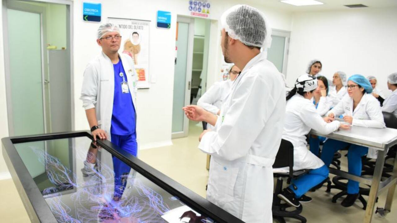 Si bien los cadáveres ofrecen a los estudiantes de medicina una perspectiva necesaria sobre el cuerpo, ya no son la única manera de estudiarlo. Al entrar al laboratorio de anatomía de las sedes de la Universidad Cooperativa los estudiantes encuentran una camilla aparentemente vacía. Basta con encender la pantalla para que la imagen 3D de un cadáver con proporciones reales se proyecte sobre ella.