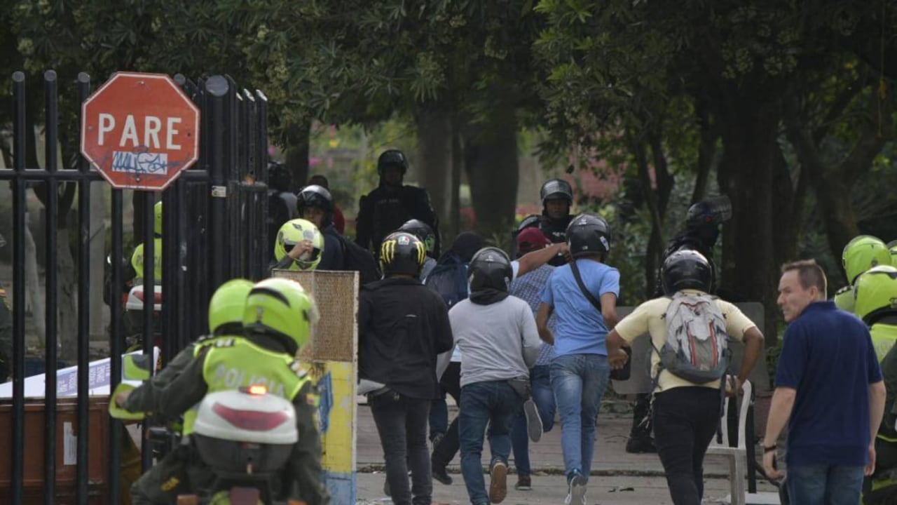 Por esa razón, en diferentes videos y fotografías publicadas en Twitter, se puede ver que varios agentes de Policía y del Escuadrón Móvil Antidisturbios (Esmad) ingresan al campus de la universidad, lanzan gases lacrimógenos y capturan a jóvenes sin capuchas que estaban dentro de la universidad.