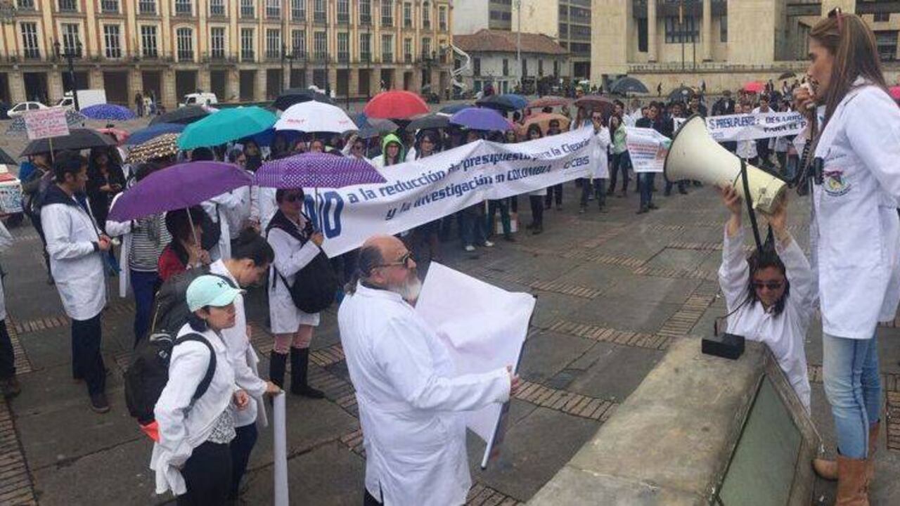 Con carteles y arengas, la comunidad académica salió a marchar desde las 10 la mañana, en Cali, Bucaramanga, Medellín, Tunja, Bogotá y Manizales, para exigir un aumento de presupuesto para el sector de la ciencia, pues, aunque todavía no está aprobada la reducción, hoy el desarrollo de investigaciones ya se han visto afectadas por los continuos recortes desde 2014.