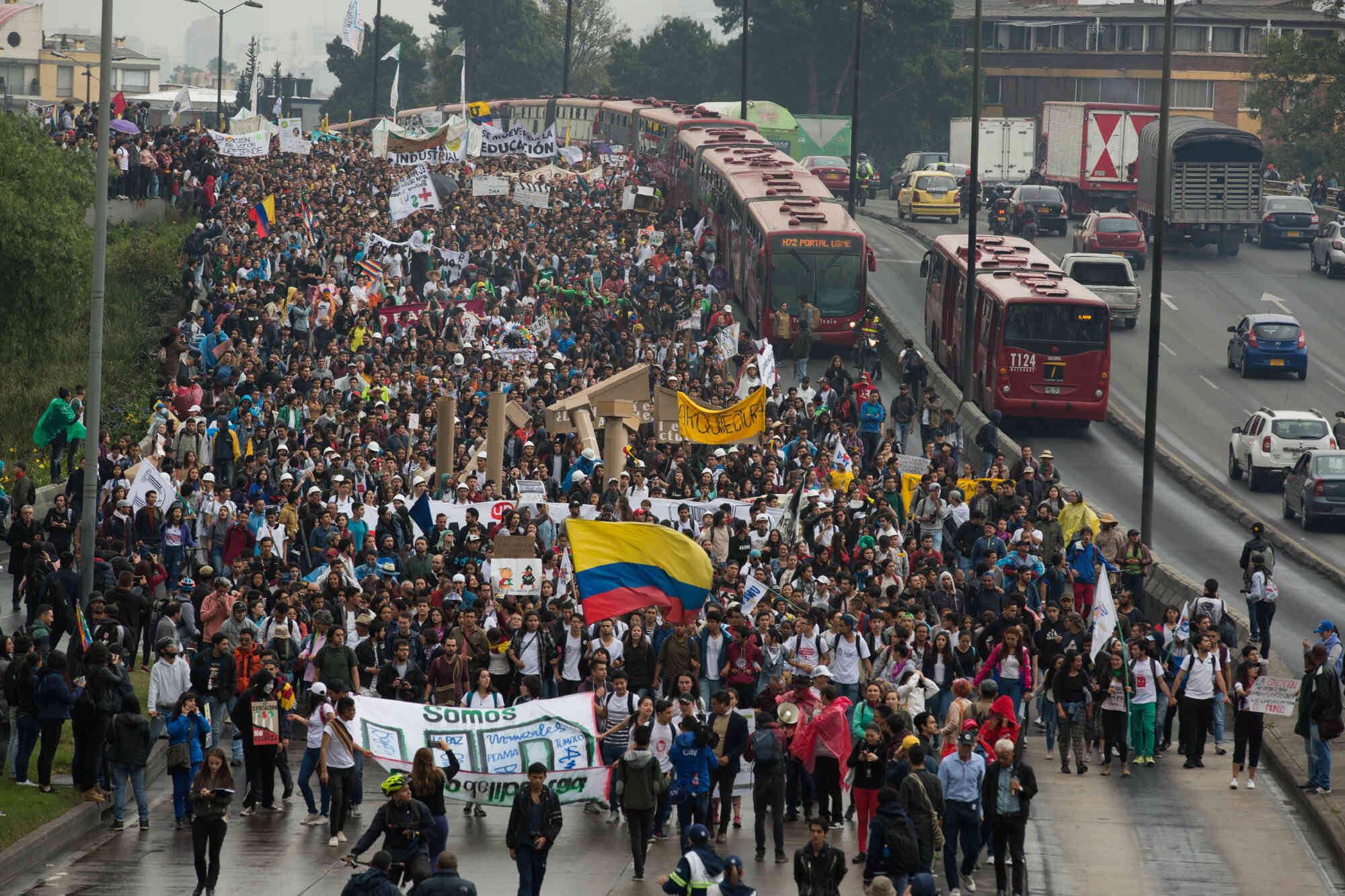 "Presupuesto, presupuesto, para la educación. No más armas ni dinero para la guerra. No queremos seguir matándonos", fue una de las consignas. Daniel Reina / SEMANA