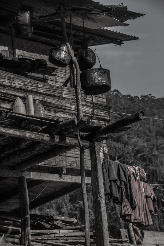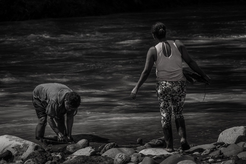 Primero hay que luchar para sobrevivir en medio del abandono, después viene la resistencia a la guerra. En todos los poblados hay multitud de casas vacías y derrumbadas de la gente que huyó del conflicto. Hay caseríos que están vacíos por completo, como pasa en Carrá, donde hace tres años ocurrió una masacre atribuida al ELN. Otros, como Taparal, conservan sólo la mitad de sus pobladores luego de que una empresa de triplex asentada en la zona abandonó sus instalaciones por la presión de los grupos armados. Las rentas de la minería y los cultivos de coca, al igual que la ruta directa al Pacífico usada por los narcotraficantes, convierten al San Juan en un territorio en permanente disputa.