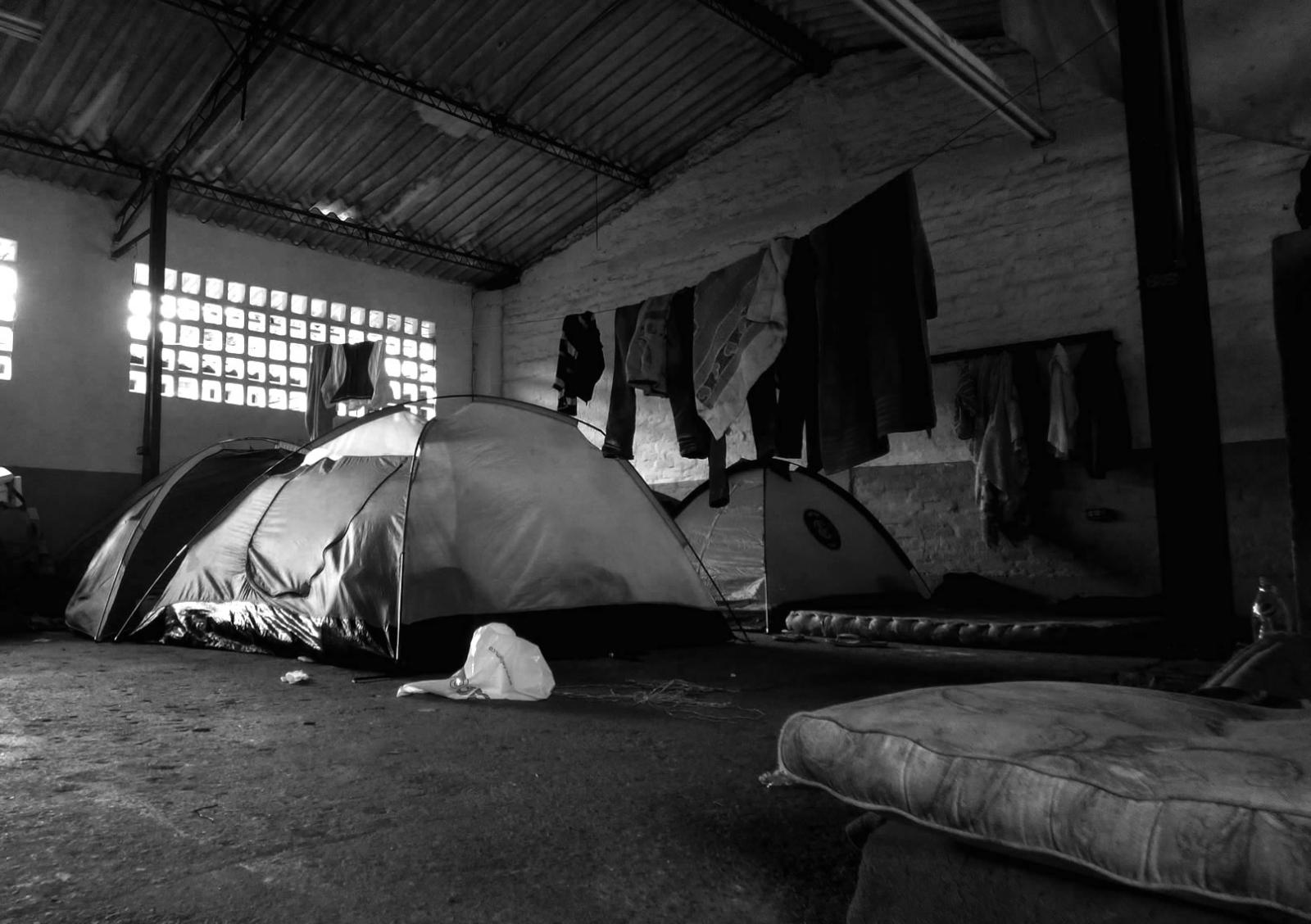 Así lucía el refugio hace pocos días. La mayoría de venezolanos tiene carpas, colchonetas y elementos básicos de aseo que les suministró el albergue. © SUSANA SERRANO