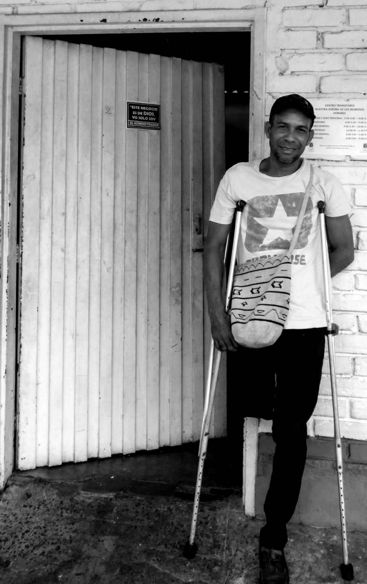 IVIS CALDERÓN es uno de los cientos de venezolanos que llegó con la primera ola al albergue. Aunque le falta la pierna derecha, no se ha detenido en su búsqueda de un lugar en Cali donde poder afincarse. Entró a Colombia por Cúcuta y ha trasegado por Pamplona, Berlín, un corregimiento de Tona (Santander), y Bucaramanga. A Santander llegó a lomo de mula, estuvo en Pasto y en Jamundí lo ayudó un amigo con el alojamiento.