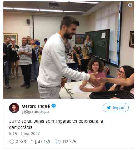 Antes del referéndum el Barcelona emitió un comunicado en el que se mostró "fiel a su compromiso histórico con la defensa del país, de la democracia, de la libertad de expresión y del derecho a decidir", agregando que "seguirá apoyando la voluntad de la mayoría del pueblo de Cataluña, expresada siempre de una forma cívica, pacífica y ejemplar".
