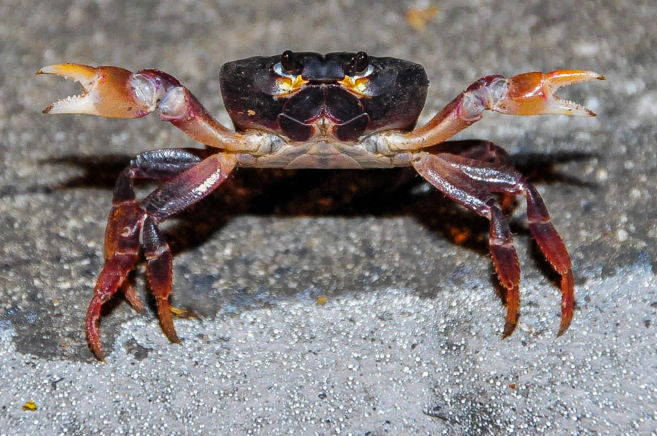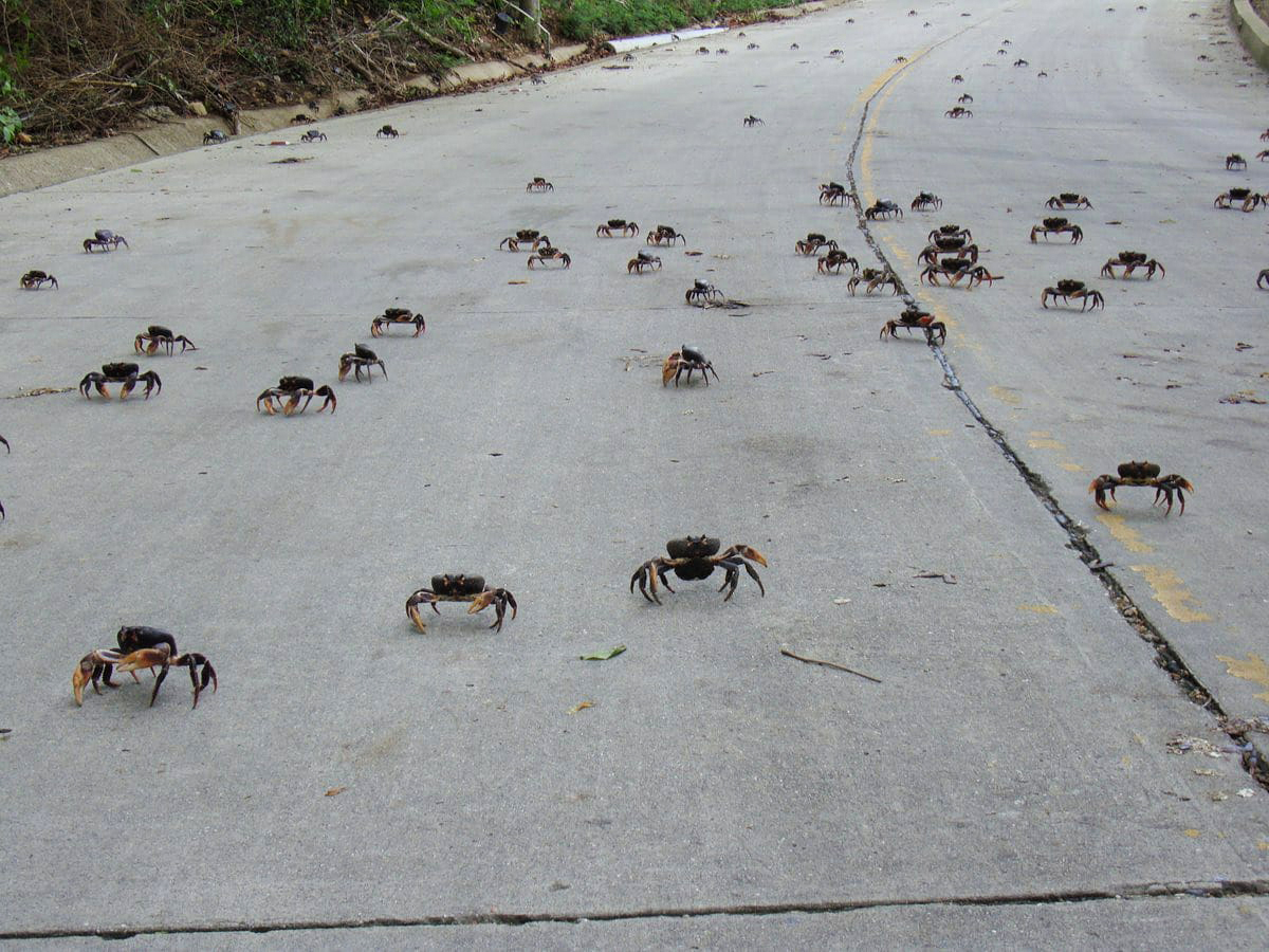 La Circunvalar de Providencia está cerrada. En la noche no se ven las motos sin luces pasar a toda velocidad. Solo se escucha un crujido que viene bajando por la selva, caminando a paso lento y de costado. No se puede ver el suelo ni la línea amarilla que delimita los carriles. Es abril y cientos de cangrejos negros bajan de sus madrigueras para dejar sus huevos en el mar. Es la veda, la etapa más importante de sus vidas.