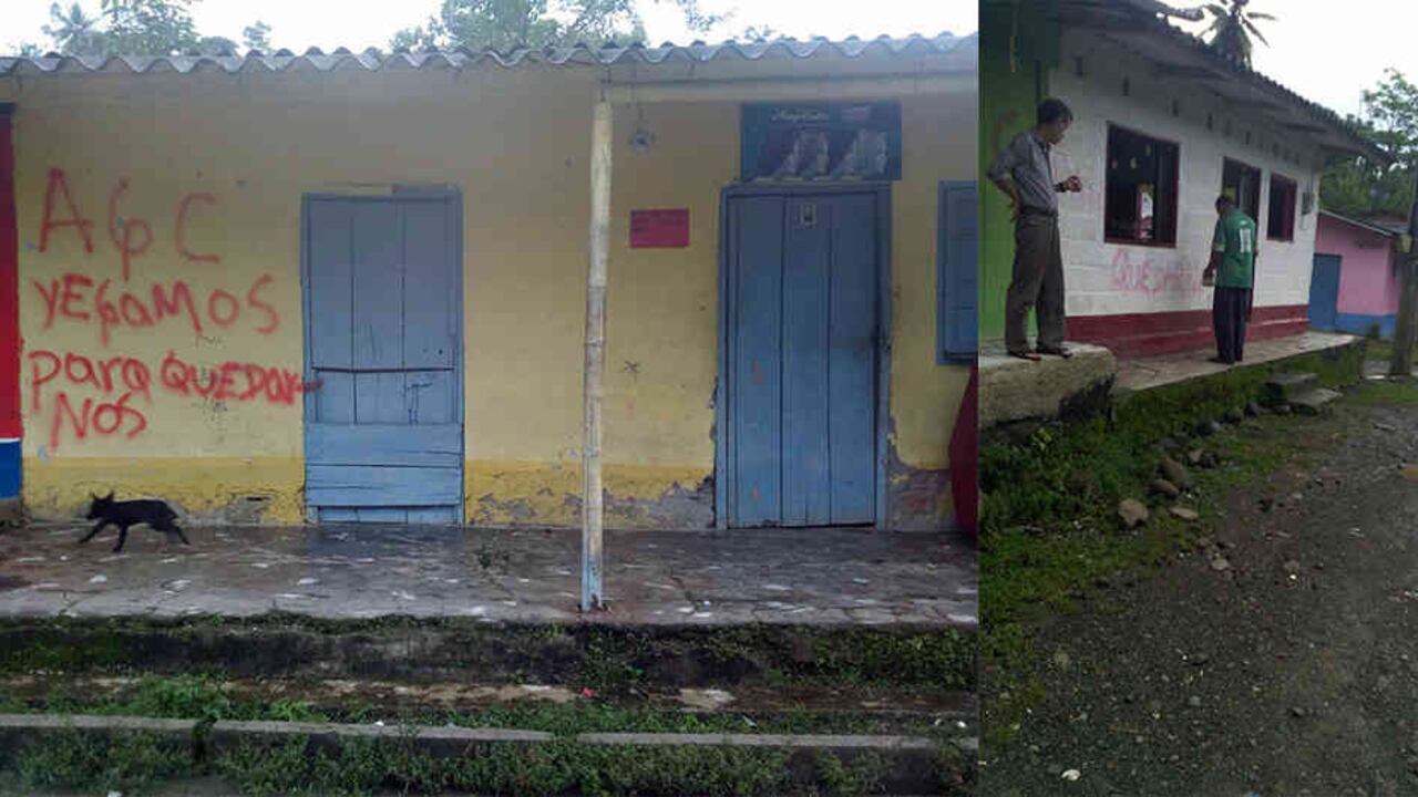 "Es muy raro lo que sucedió porque se dice que fueron tres personas las de los grafitis, pero que nadie los vio. El Ejército y la Policía no los vieron, pese a que tienen puestos de control muy cerca. Es un poco extraño. Es muy complicado porque la de San José es una comunidad que todo el tiempo se ha quejado de eso, y todo lo que uno diga está mal. ¿Qué hicimos nosotros? Informar a las autoridades, que fueron temprano para verificar las cosas”, dijo el alcalde, quien aceptó que los rumores de la presencia de las AGC en la zona, que antes ocupaba el quinto frente, no son nuevos, y hace cinco días se denunció el paso de hombres extraños por la escuela de la zona, aunque no estaban armados.