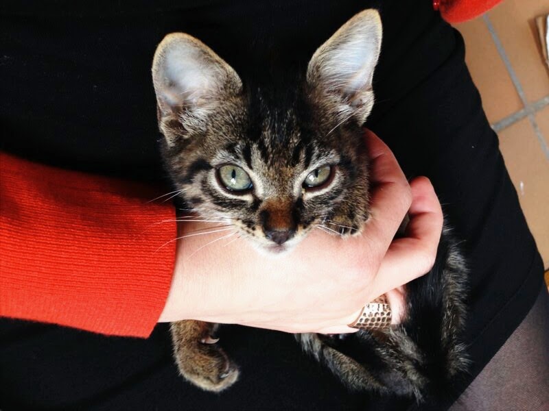 Encontraron a este pequeño cerca a la finca de mi cuñado en Apulo y se lo trajeron a la Macarena. Aún no han decidido qué nombre ponerle, pero están considerando "Mao", no solo porque es la palabra china para gato, sino también porque tienen la esperanza que se vuelva un dictador, especialmente frente a las palomas en el techo del edificio.