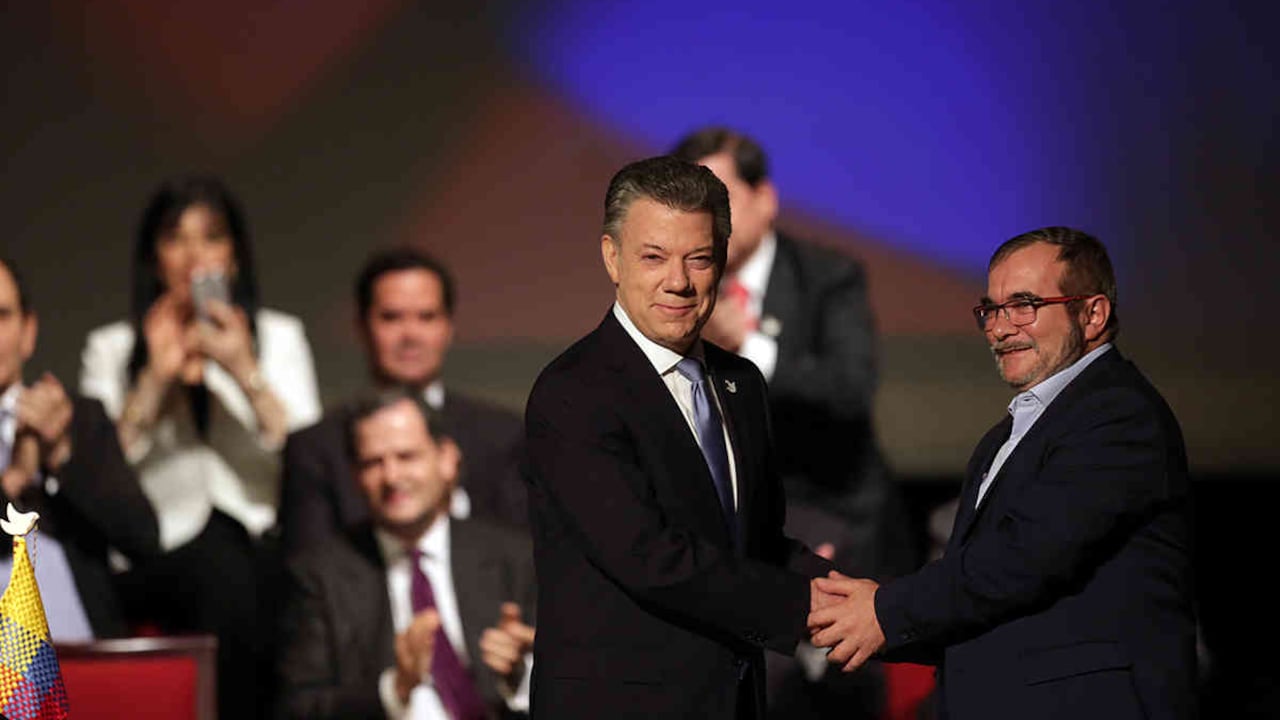 Después de 53 días del plebiscito el presidente Juan Manuel Santos y Timoleón Jiménez se dieron la mano nuevamente pactando el nuevo acuerdo de paz.