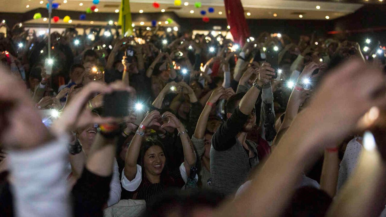 El candidato de la Colombia Humana Gustavo Petro alcanzó el 25,08% de los votos y aseguró su paso a la segunda vuelta. Cientos de personas se reunieron dentro y fuera del Down Town Majestic, en el centro de Bogotá, para celebrar el triunfo.