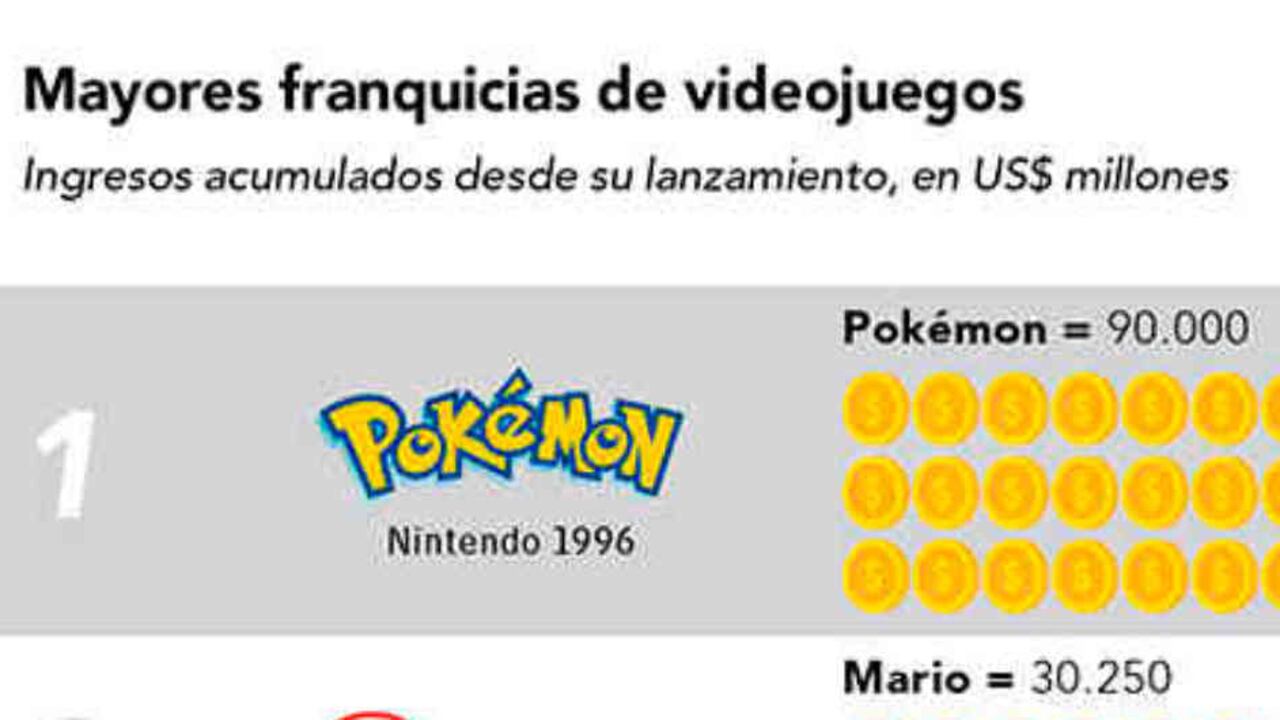 Las empresas productoras no solo tienen ingresos relacionados con la venta de videojuegos en consolas o descargas en línea- También por el uso de la marca en otro tipo de productos, desde el cine hasta juguetes. Esto explica el éxito de Pokémon, la franquicia de videojuegos de mayores ingresos. Pokemon es propiedad de Nintendo, también dueña de la segunda franquicia más vendedora: Mario Bros. Los videojuegos, además, como actividad de entretenimiento en casa, hoy ganan con las cuarentenas.