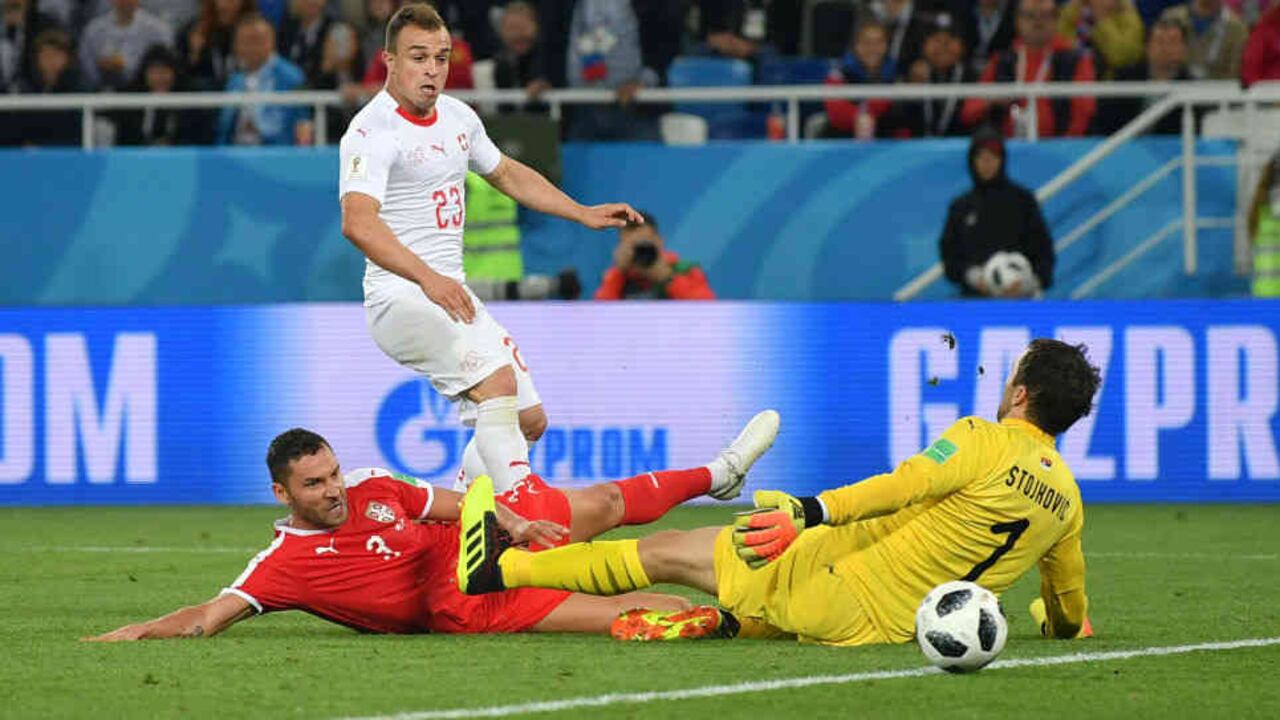 El empate para los suizos fue uno de los mejores goles en lo que va del mundial. El volante del Arsenal Granit Xhaka empalmó la pelota de zurda con un violento remate desde fuera del área imposible para el arquero Vladimir Stoikovic.