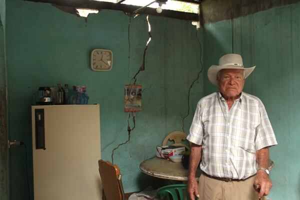 Mariano Méndez es ebanista, vive en medio de los escombros y tuvo que poner palos de guadua para que su casa no se caiga Foto: Pablo Andrés Monsalve
