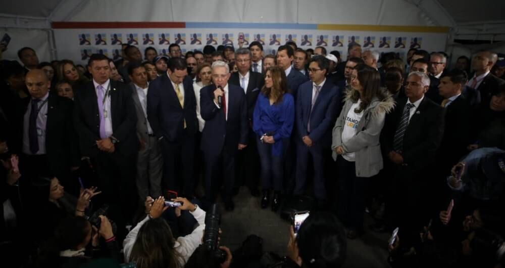 Con cánticos de “Uribe, Uribe, Uribe” y “Uribe, amigo, Colombia está contigo”, los asistentes recibieron al expresidente.