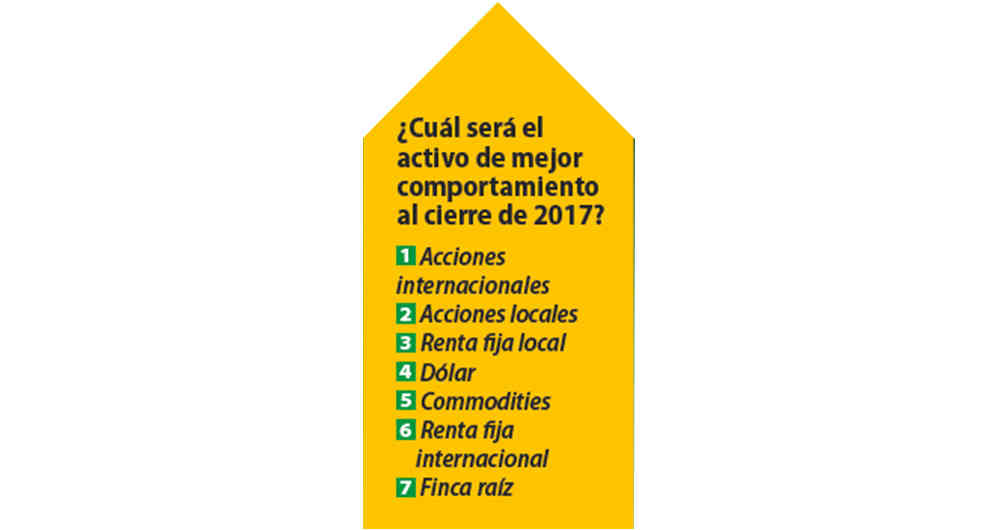 *(Las recomendaciones de inversión se basan en una encuesta realizada por Dinero entre el 11 y el 25 de agosto de 2017. Fue respondida por Fénix Valor, Protección, BTG Pactual, Banco de Bogotá, Valora Inversiones, Credicorp Capital, Ultraserfinco, Old Mutual, Casa de Bolsa, Colfondos, Alianza BBVA, Arena Bursátil, Itaú y Fiduciaria de Occidente)