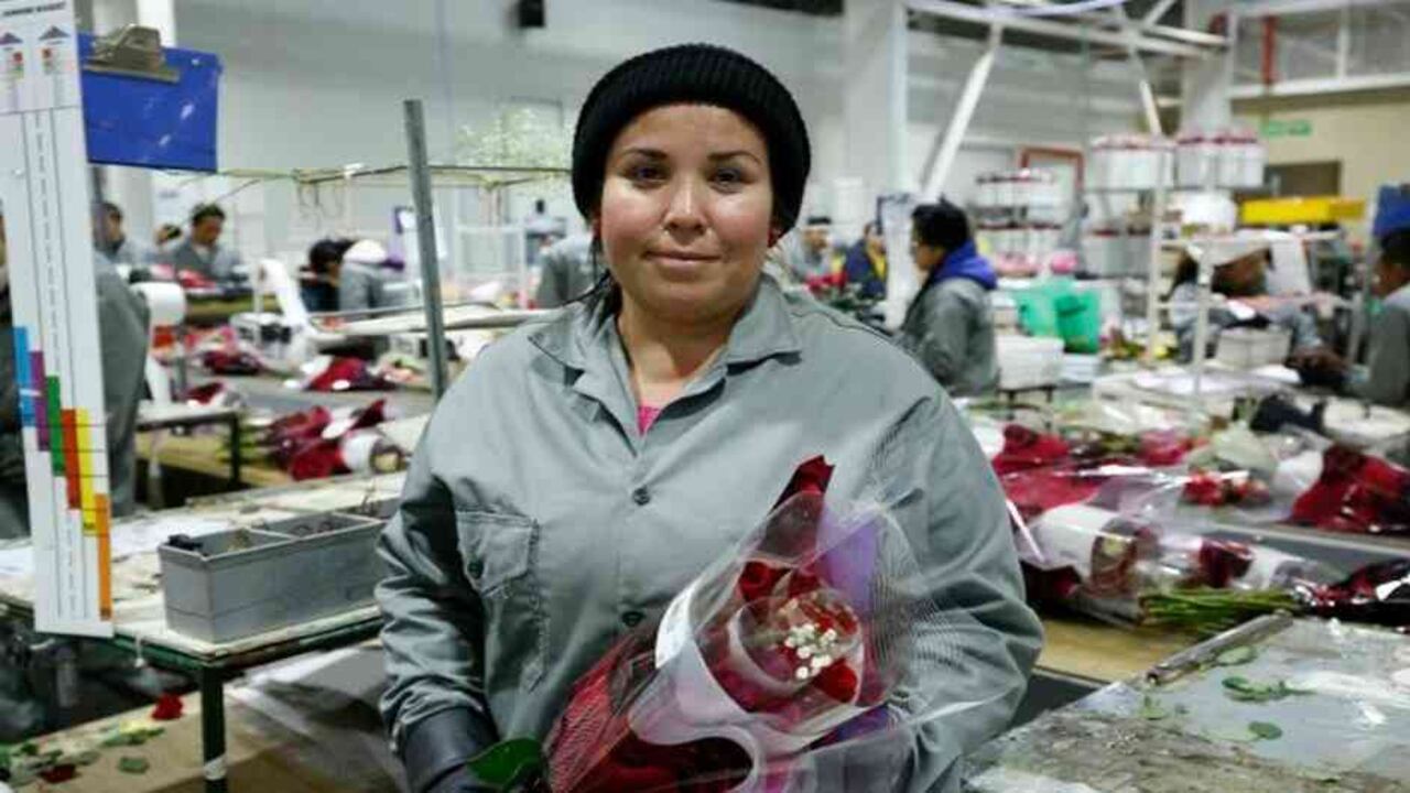Más de 200 personas trabajan en la planta de Sunshine Bouquet para producir los ramos de rosa que llegarán a Estados Unidos.