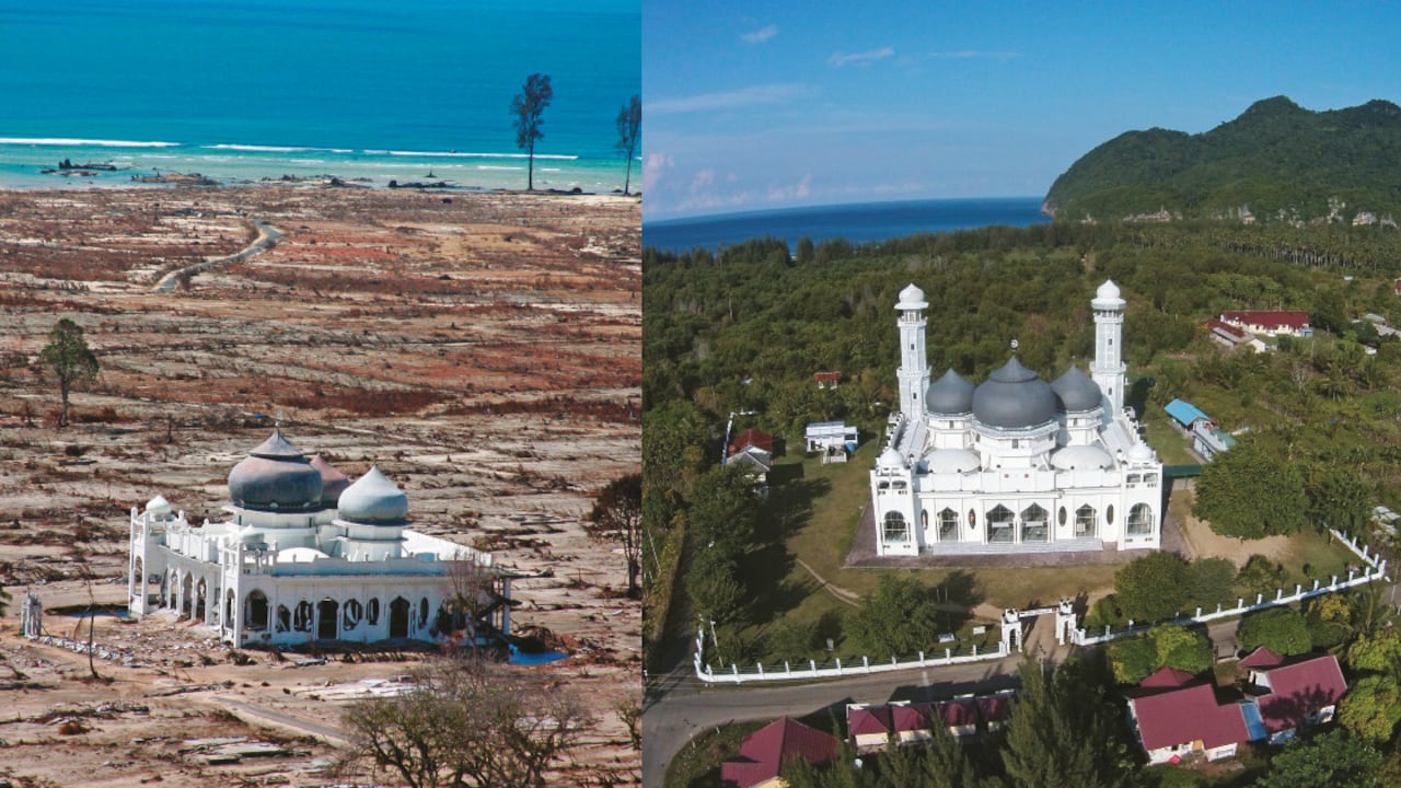Este 26 de diciembre el mundo conmemorará los diez años de uno de los peores desastres naturales de la historia. Un temblor en las profundidades del océano Índico desató en plena Navidad de 2004 un tsunami que acabó con la vida de 250.000 personas en 14 países. SEMANA se dio a revisar archivos y halló dos valiosas fotos. Se trata de imágenes aéreas de la mezquita de Lampuuk, un distrito costero de Banda Aceh, una ciudad en la isla indonesa de Sumatra. La primera imagen, tomada una semana después de la catástrofe, muestra la huella destructiva del tsunami en torno al solitario y semiderruido edificio de la mezquita. La segunda, del primero de diciembre de 2014, retrata el paso del tiempo: nuevas casas y un enorme bosque rodean la construcción.