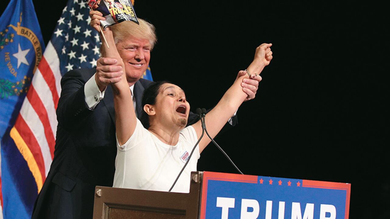 Gritó la colombiana Myriam Witcher tras tomarse el escenario durante un evento de campaña del candidato republicano Donald Trump el jueves en Las Vegas, Estados Unidos.