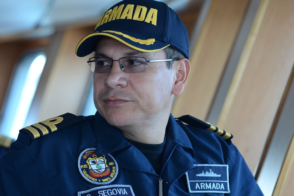 El capitán Camilo Segovia tuvo en sus manos el timón del buque durante más de tres meses y alcanzó a estar 40 días en altamar sin ver un solo trozo de tierra. Foto: Armada Nacional de Colombia