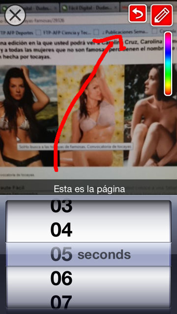 1. El reloj a la izquierda para elegir el tiempo que tendrá su amigo para ver la foto. Tiene de 1 a 10 segundos.