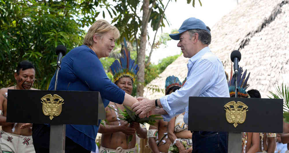 Sonriente y complacida por las decisiones, Solberg observaba el protocolo de las firmas. ‘La gran amiga de Colombia’, como la denominó Santos, recalcó que los pueblos indígenas son los mejores guardianes de estos ecosistemas.