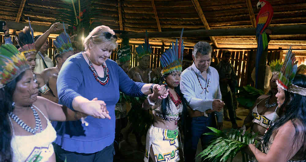 La fría mañana del martes en Bogotá saludaba nuevamente a Erna Solberg, la primera ministra de Noruega. Ella y toda su comitiva, en medio de la neblina y la baja temperatura, se resguardaban a las 8 de la mañana en el Comando Aéreo de Transporte Militar (Catam) mientras todos los preparativos estaban listos. Ese día, en compañía de Juan Manuel Santos, la líder europea llegaría al corazón del pulmón del mundo.
