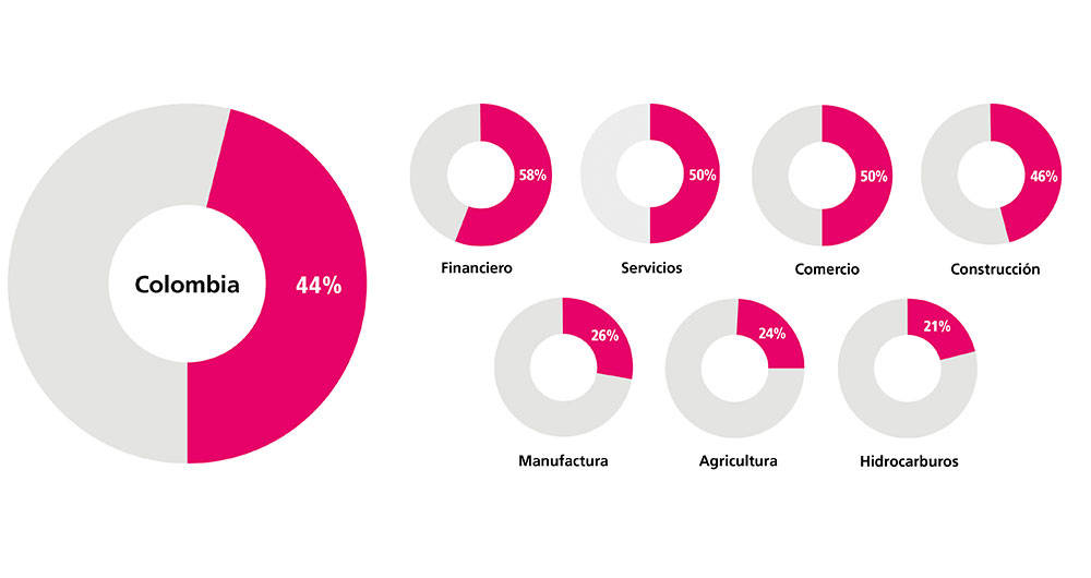 Se evidencia que contar con una participación alta de las mujeres en cargos directivos tiene un impacto positivo en las ventas como proporción de la utilidad (ROS, por su sigla en inglés). Por ejemplo, en el sector de “químicos y derivados”, las empresas con más mujeres en su nómina tienen un ROS 33% mayor que aquellas con menos participación femenina. En el caso del sector de “servicios profesionales de apoyo empresarial” el ROS aumenta en 330% en aquellas firmas con más empleadas.