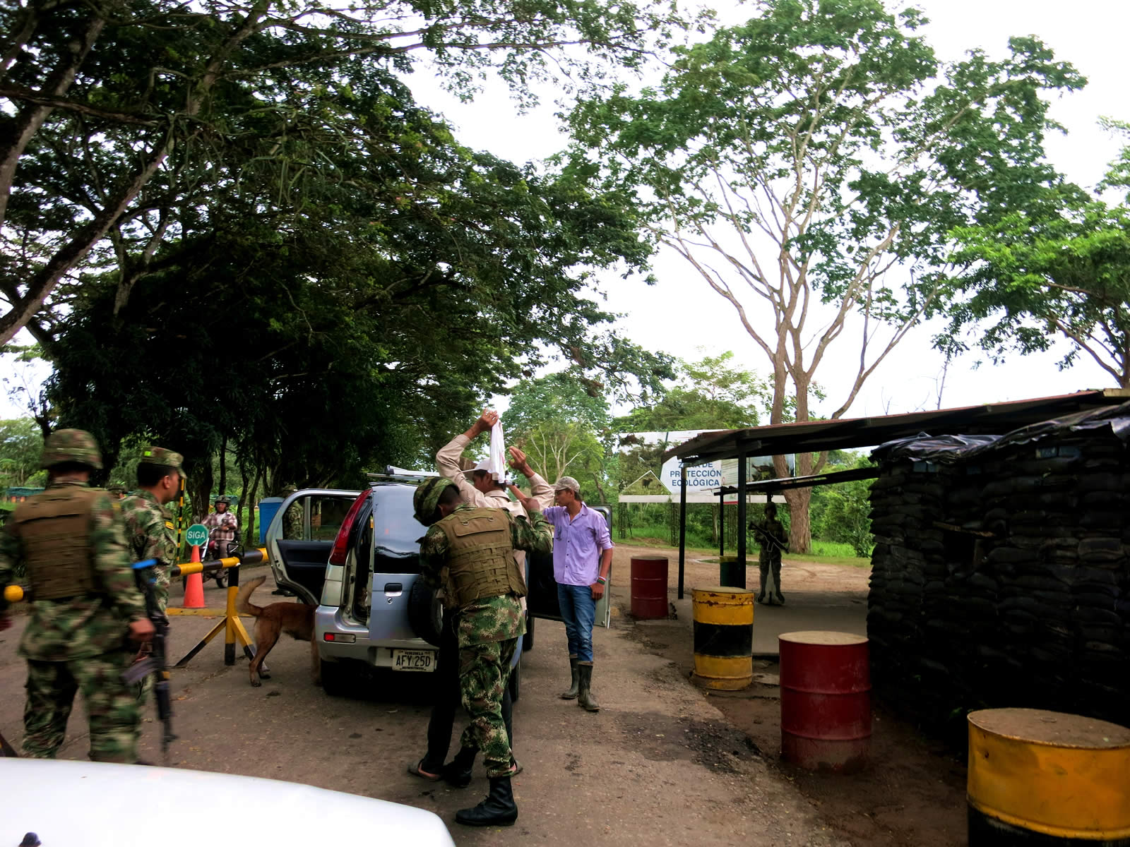 En la entrada a Caño Limón se encuentra uno de los retenes que se ven en el departamento. © STEPHAN KROENER