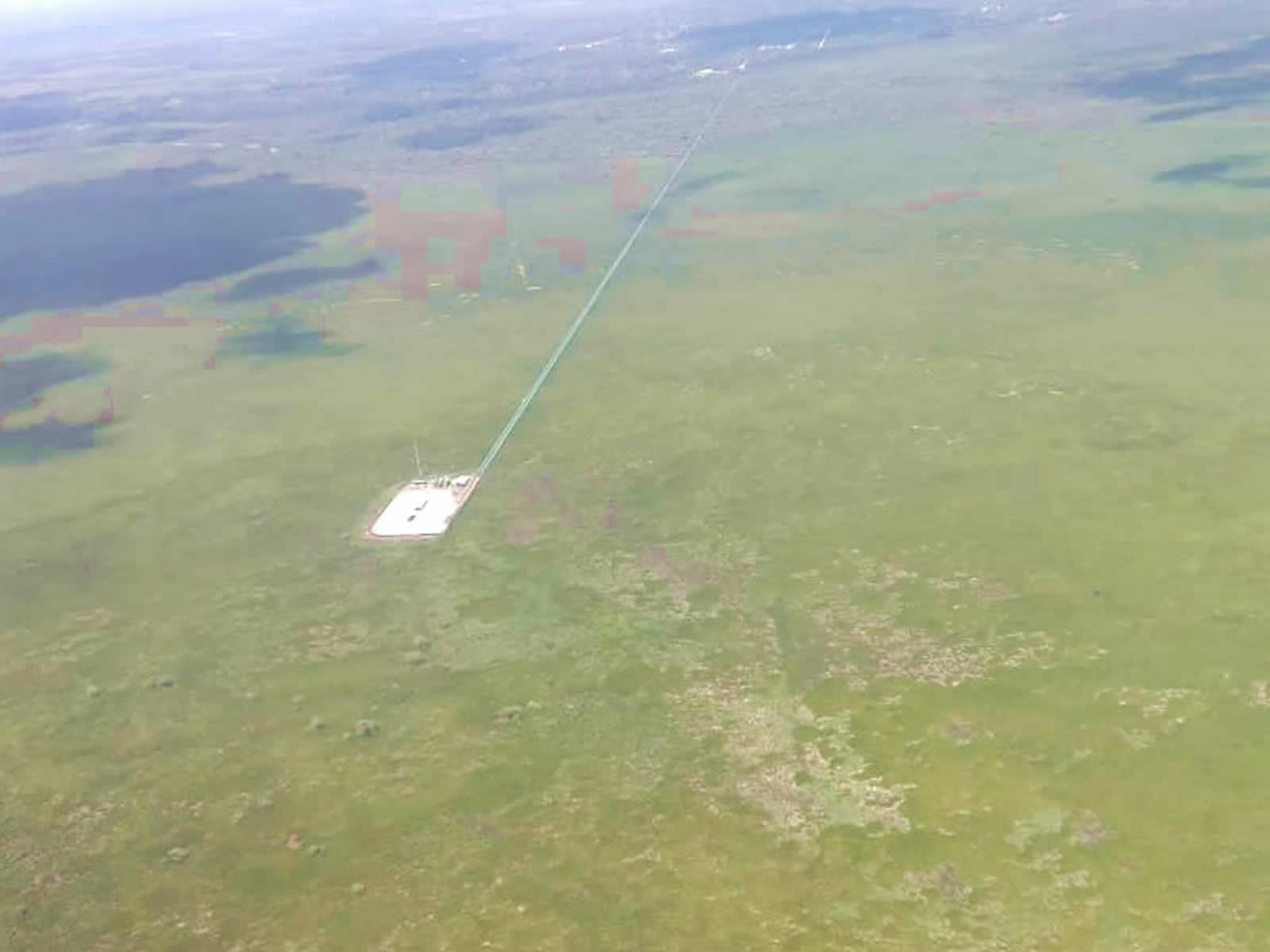 Vista aérea de la laguna de Lipa secada con la isla artificial de Chipirón y la vía ferrocarril. © CORTESÍA PARA SEMANA RURAL