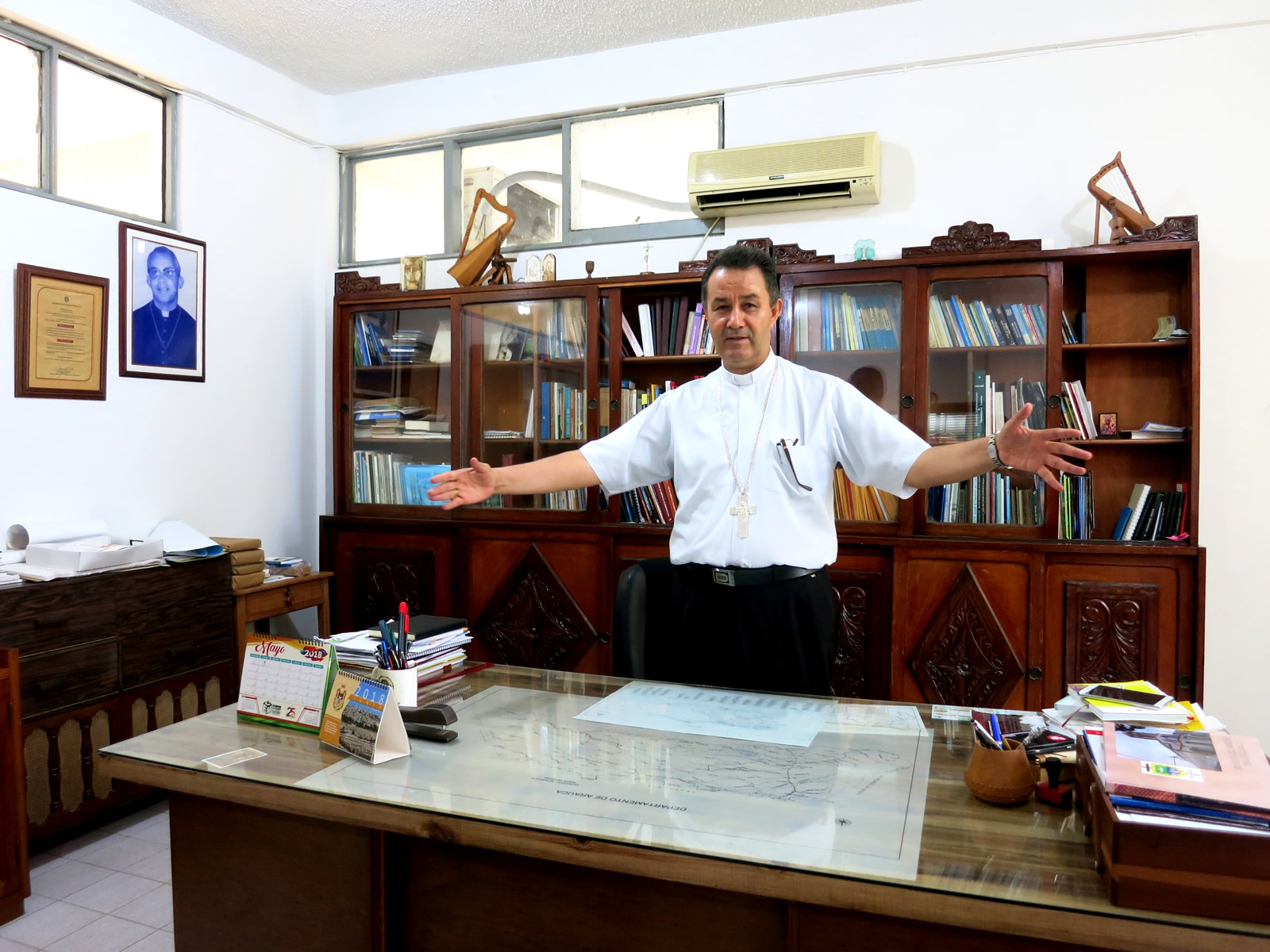 El Obispo Jaime Muñoz en su oficina en Arauca. © STEPHAN KROENER
